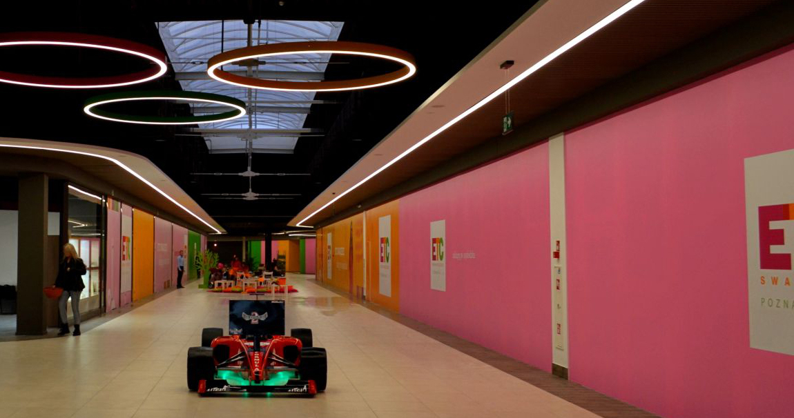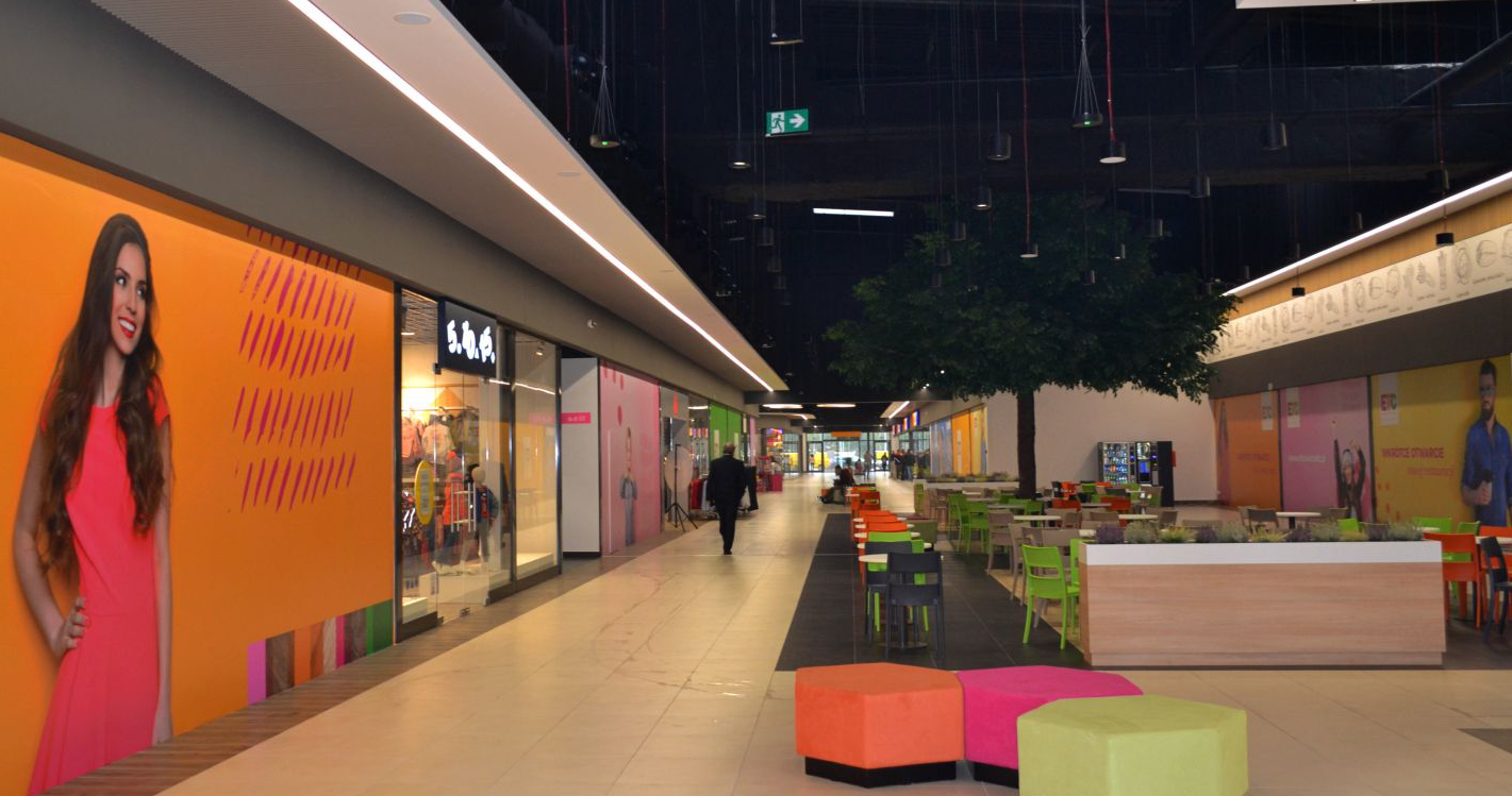 Druk realizowaliśmy w technologii lateksowej oraz UV. Pozwoliło to na uzyskanie intensywnych kolorów, dobrej przyczepności i odpowiedniej odporności na warunki panujące w przestrzeni galerii handlowej.